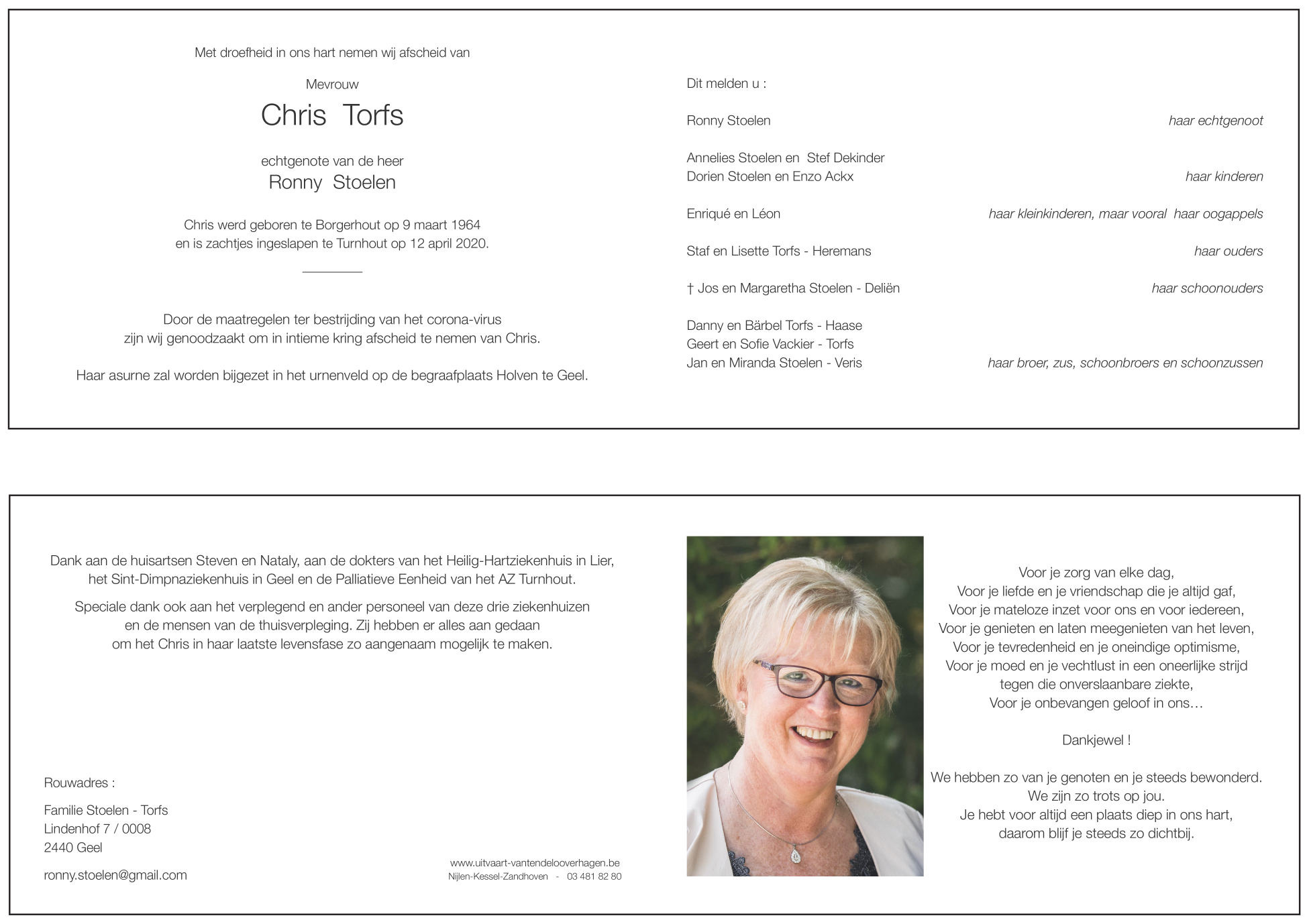 Décédée à Turnhout (2300) le dimanche 12 avril 2020 à l'âge de 56 ans