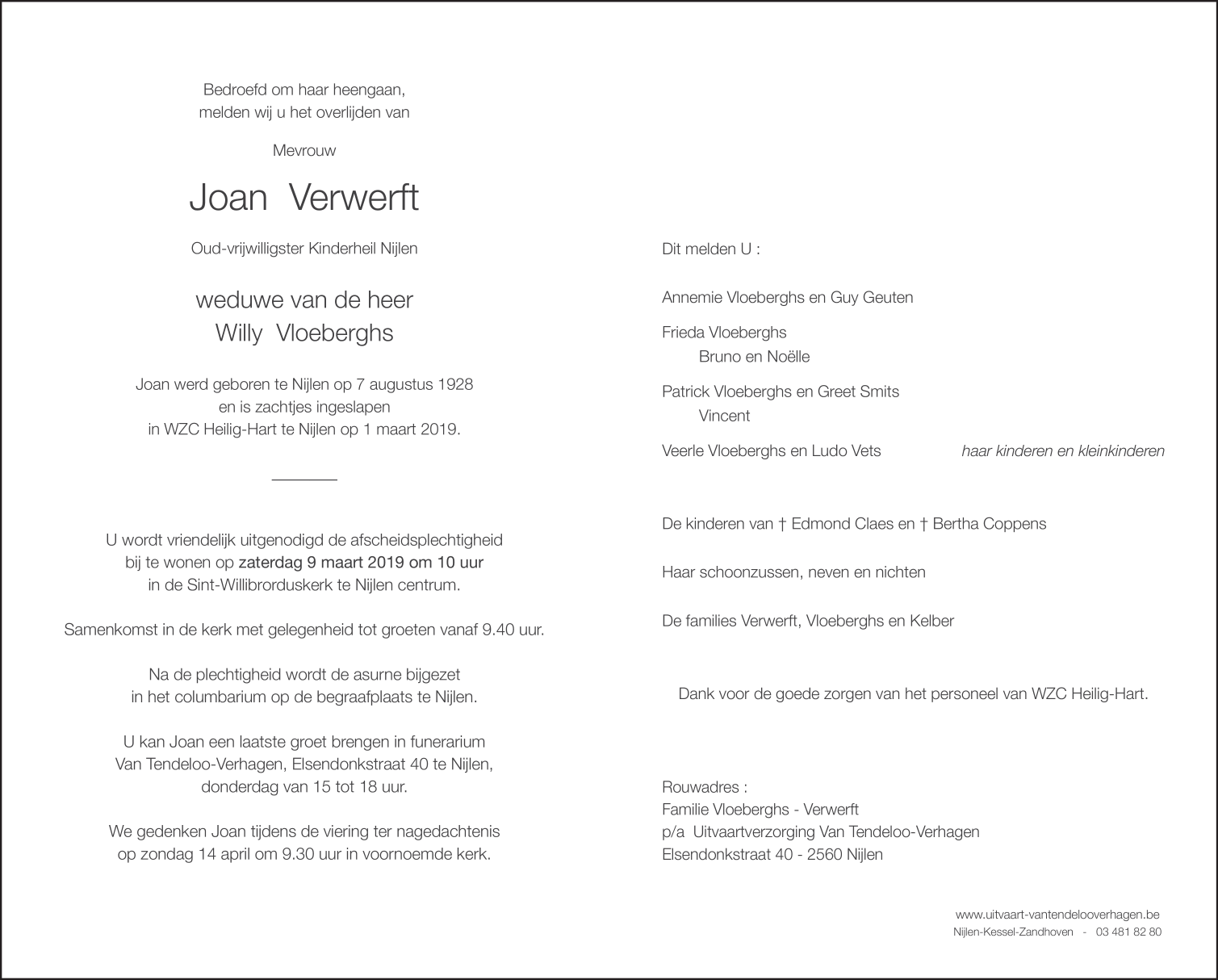 Died in Nijlen (2560) on 01 March 2019 at the age of 90 years