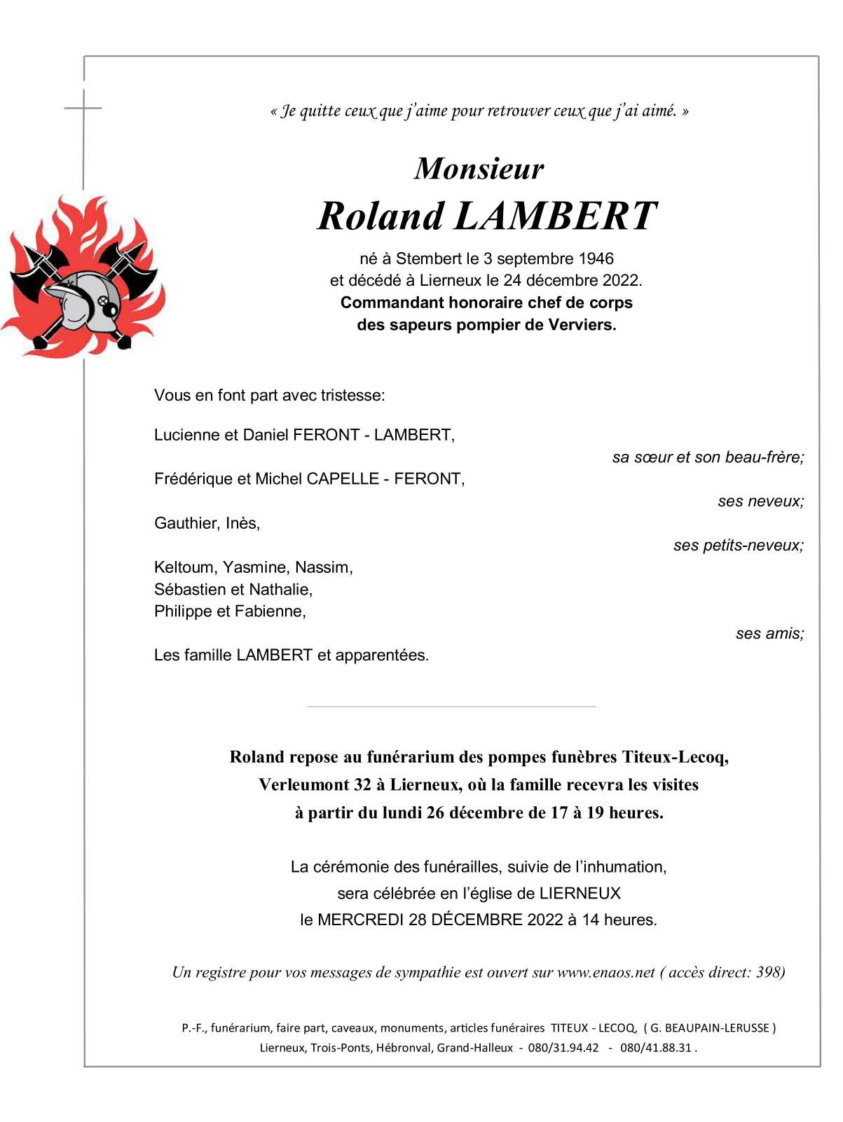 Fallecido en Lierneux (4990) el sábado, 24 de diciembre de 2022 a la edad de 76 años