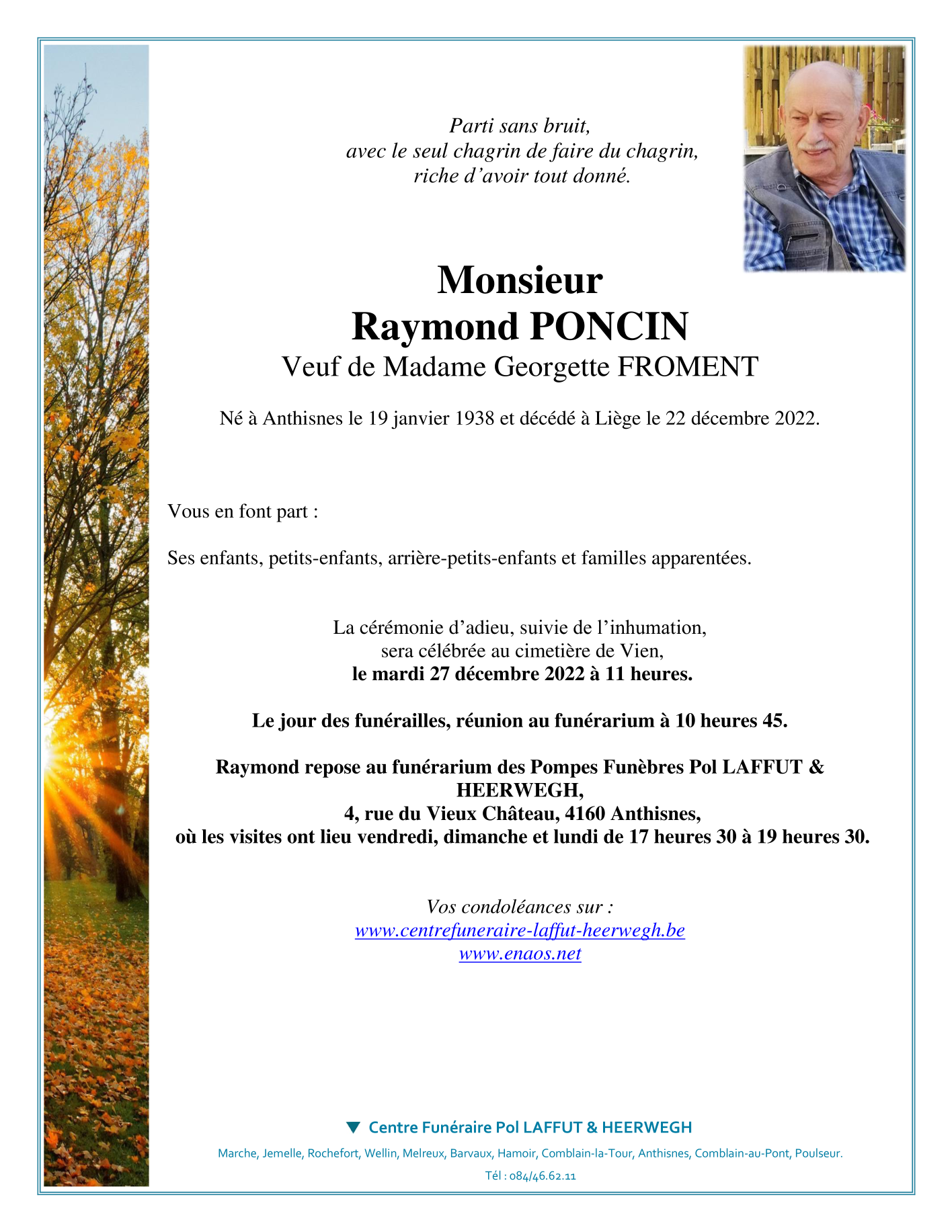 Décédé à Liège (4000) le jeudi 22 décembre 2022 à l'âge de 84 ans