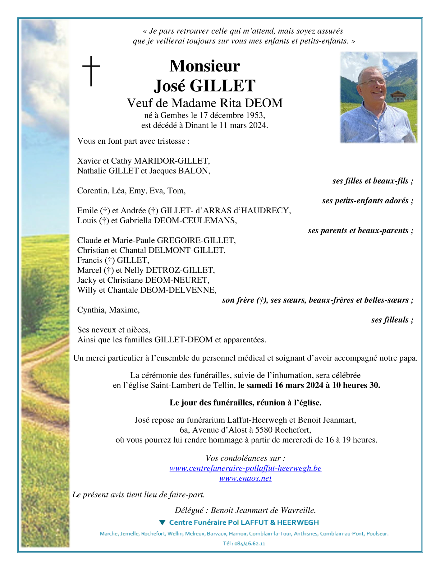 Overleden te Dinant (5500) op maandag 11 maart 2024 op 70-jarige leeftijd