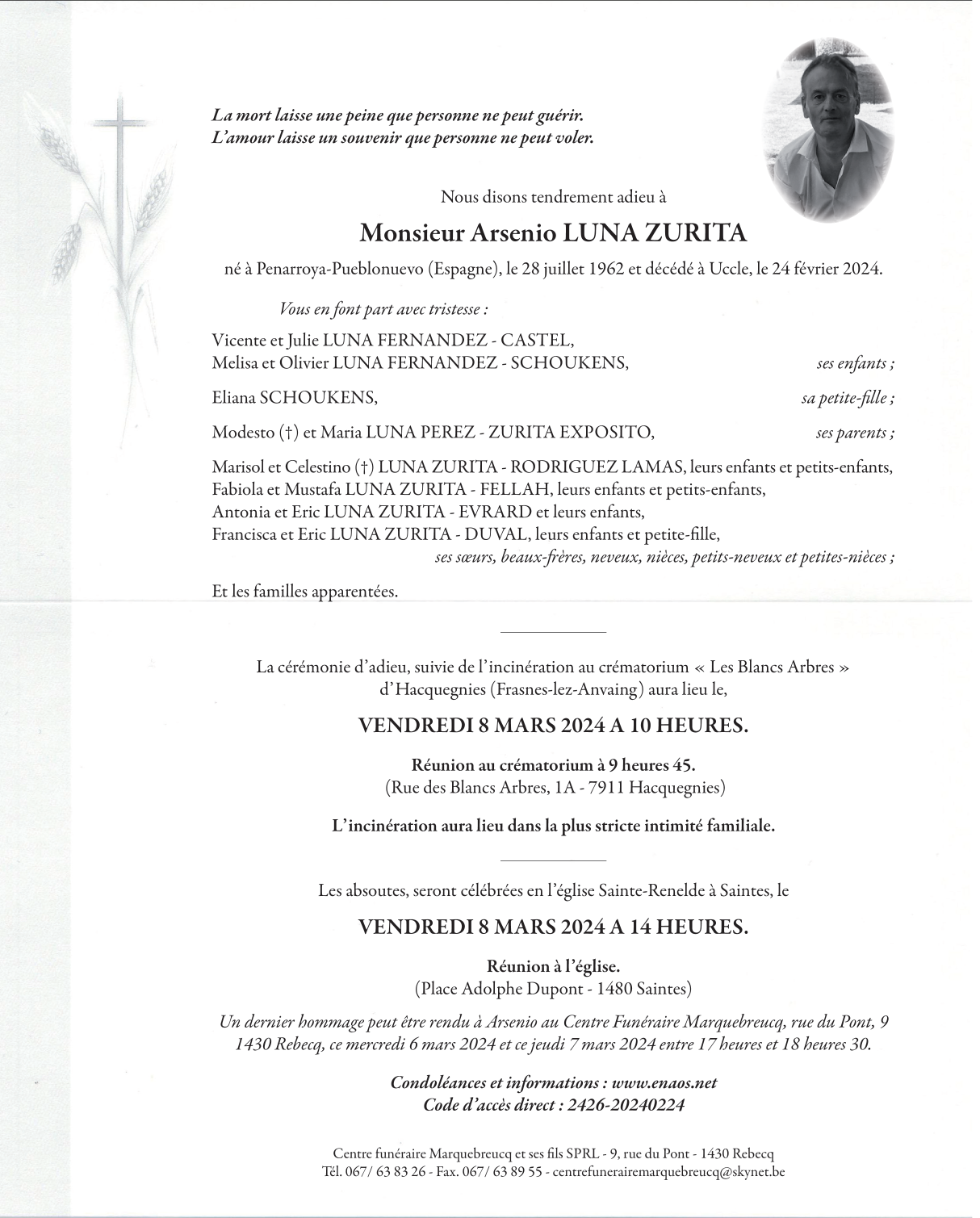 Décédé à Uccle (1180) le samedi 24 février 2024 à l'âge de 61 ans