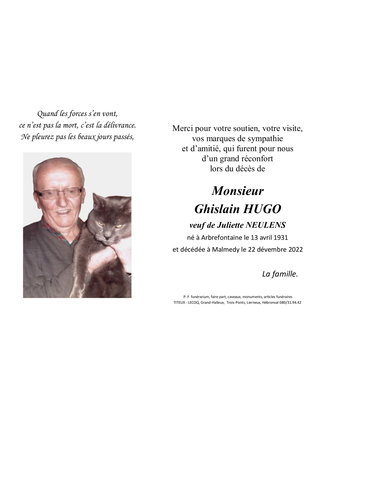 Décédé à Malmedy (4960) le jeudi 22 décembre 2022 à l'âge de 91 ans