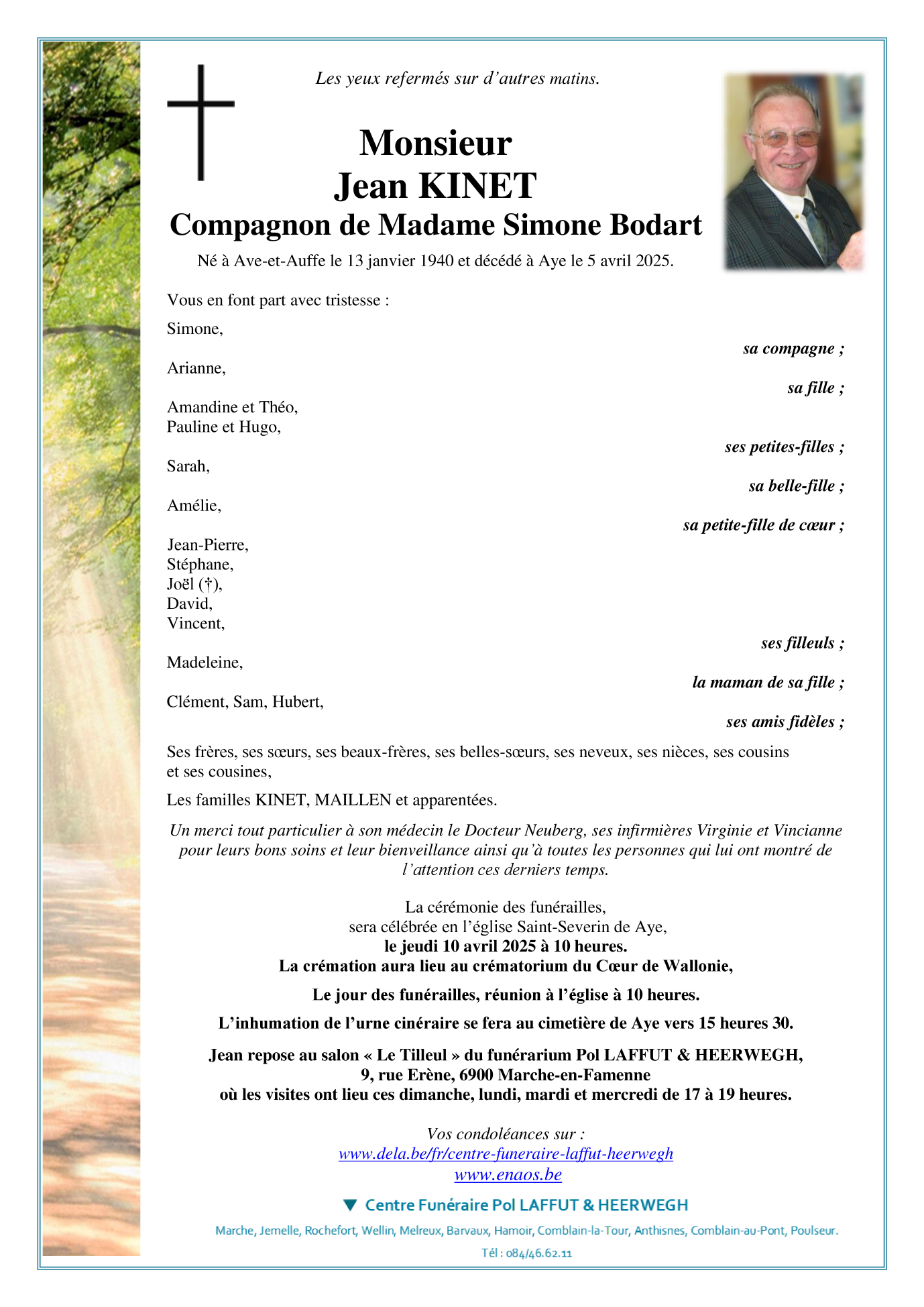 Décédé à Aye (6900) le samedi 5 avril 2025 à l'âge de 85 ans