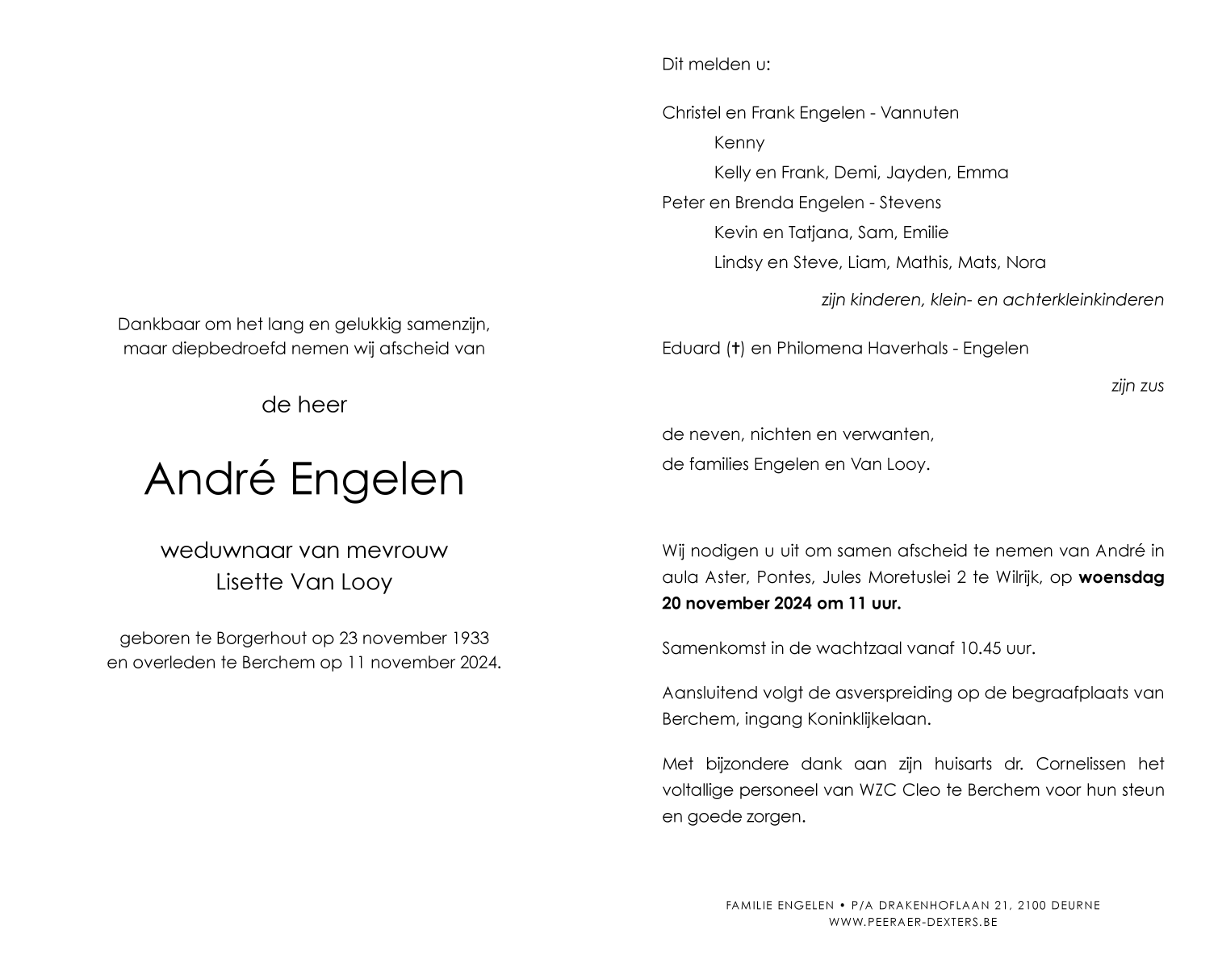 Décédé à Berchem (Antwerpen) (2600) le lundi 11 novembre 2024 à l'âge de 90 ans