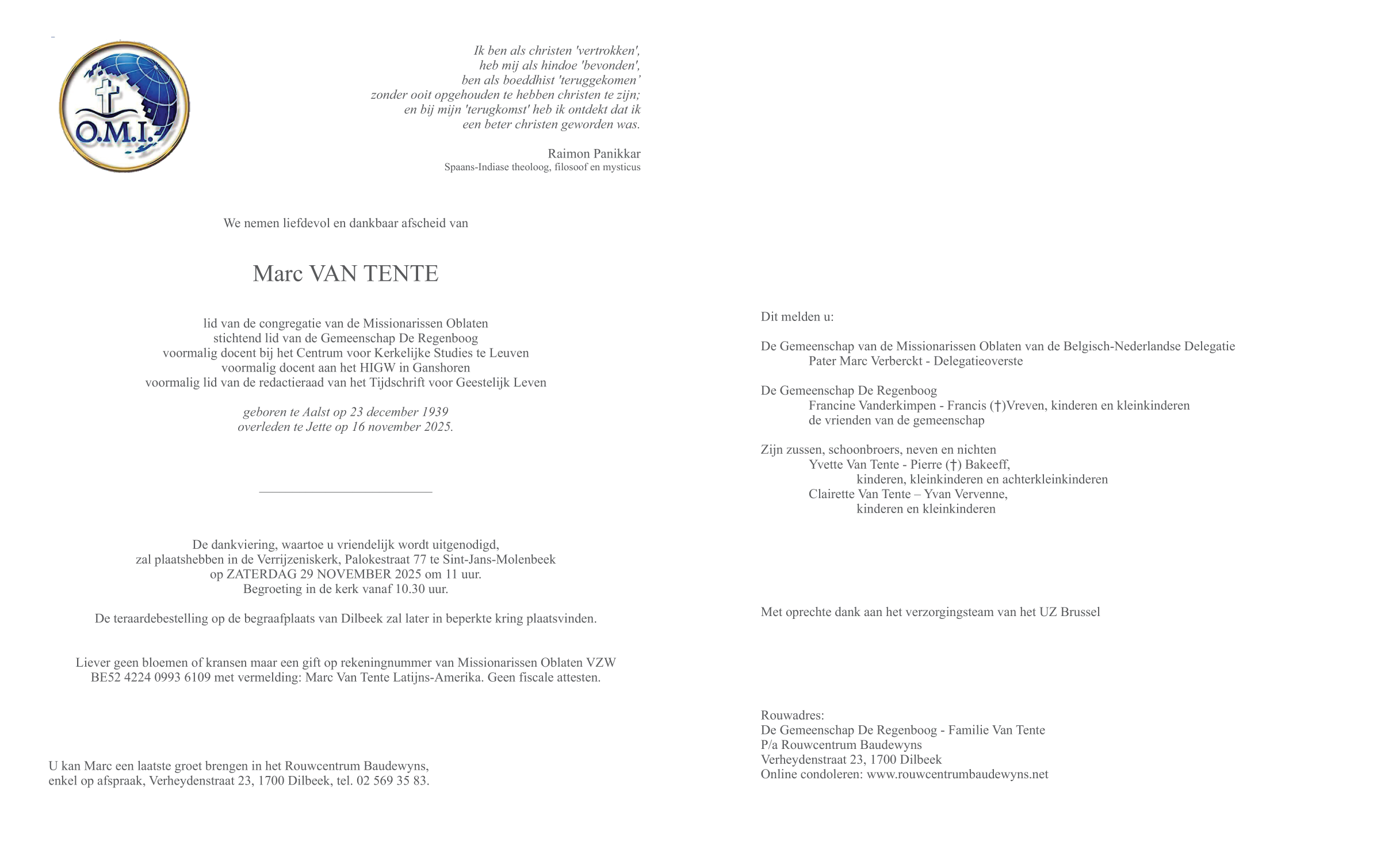 Décédé à Jette (1090) le dimanche 16 novembre 2025 à l'âge de 85 ans