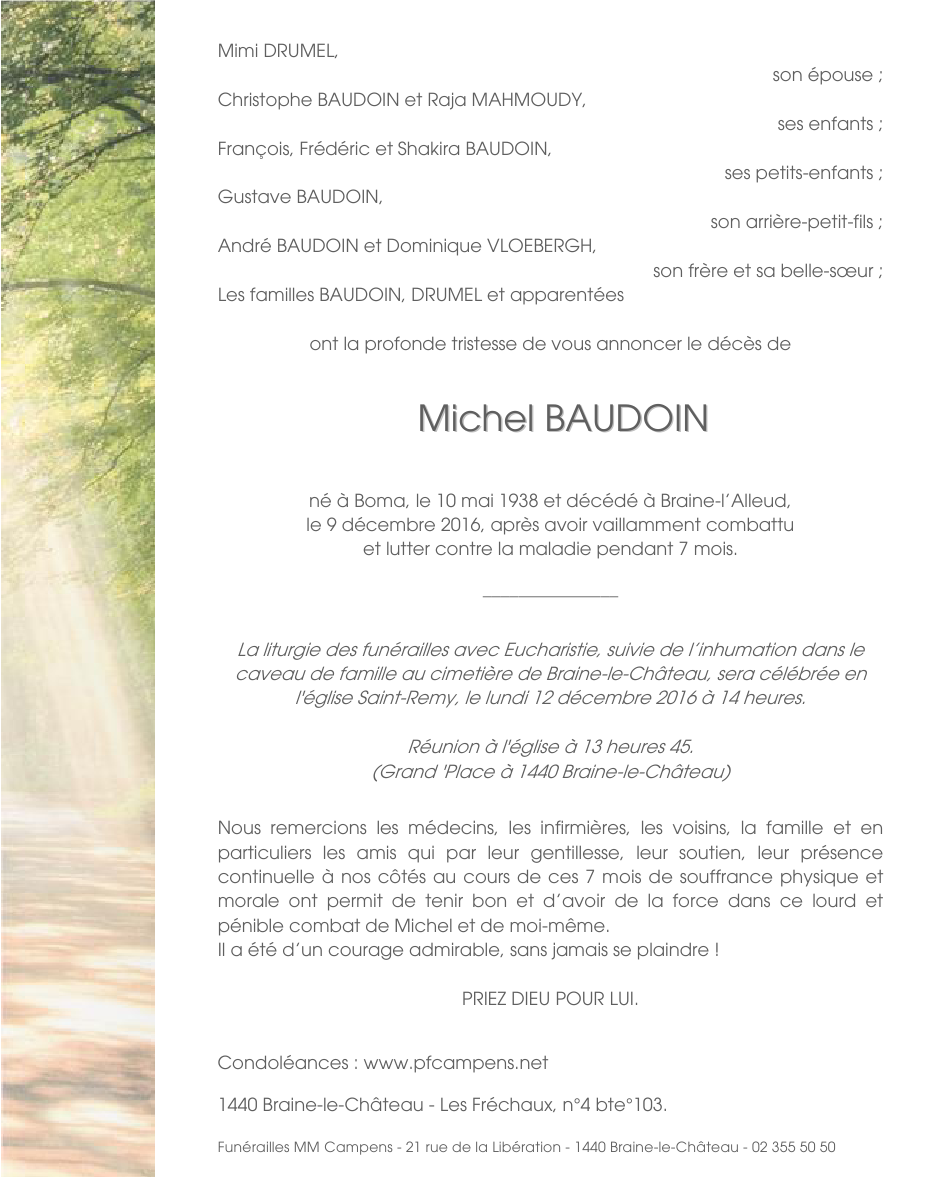 Fallecido en Braine-l'Alleud (1420) el viernes, 9 de diciembre de 2016 a la edad de 78 años