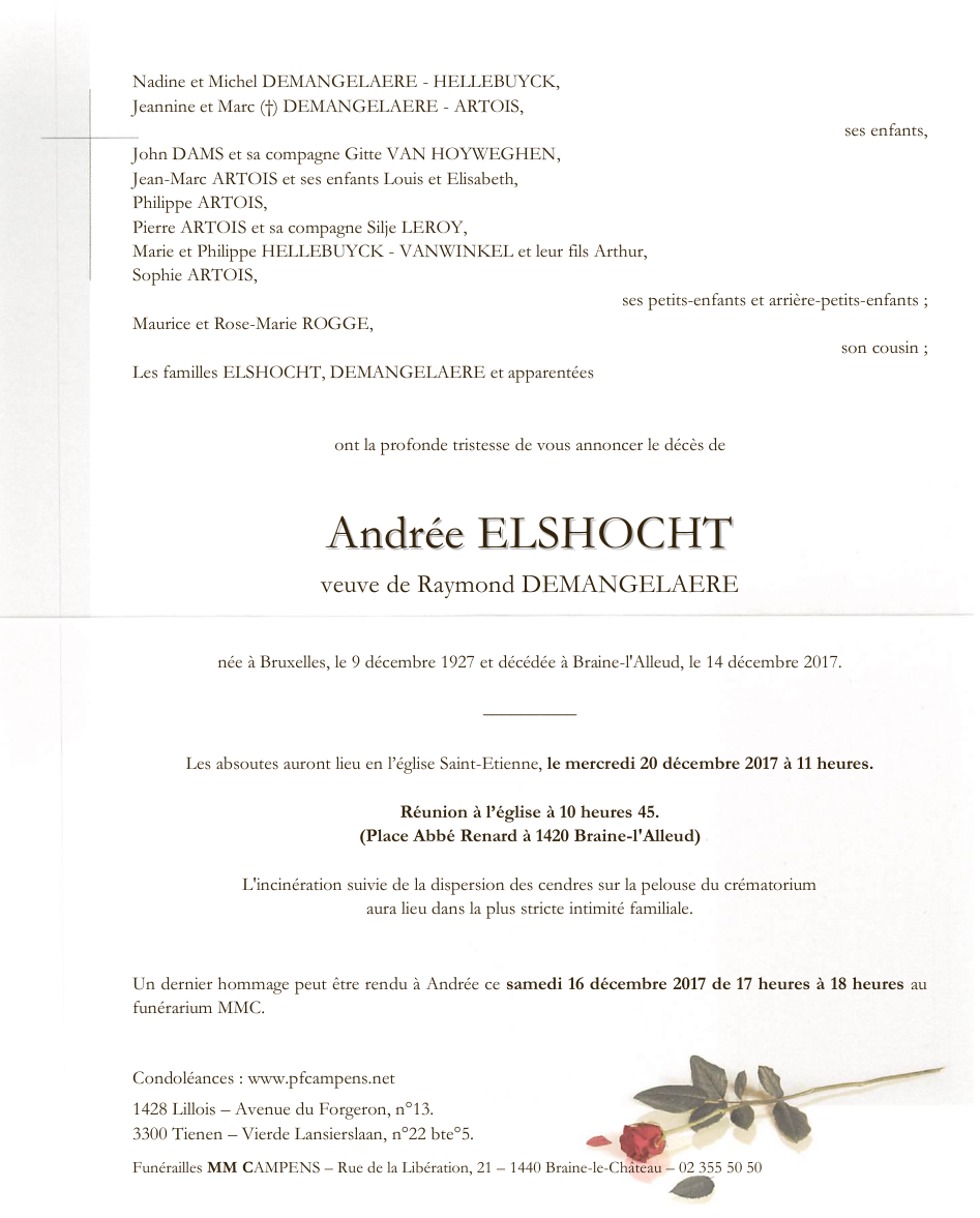 Overleden te Braine-l'Alleud (1420) op donderdag 14 december 2017 op 90-jarige leeftijd