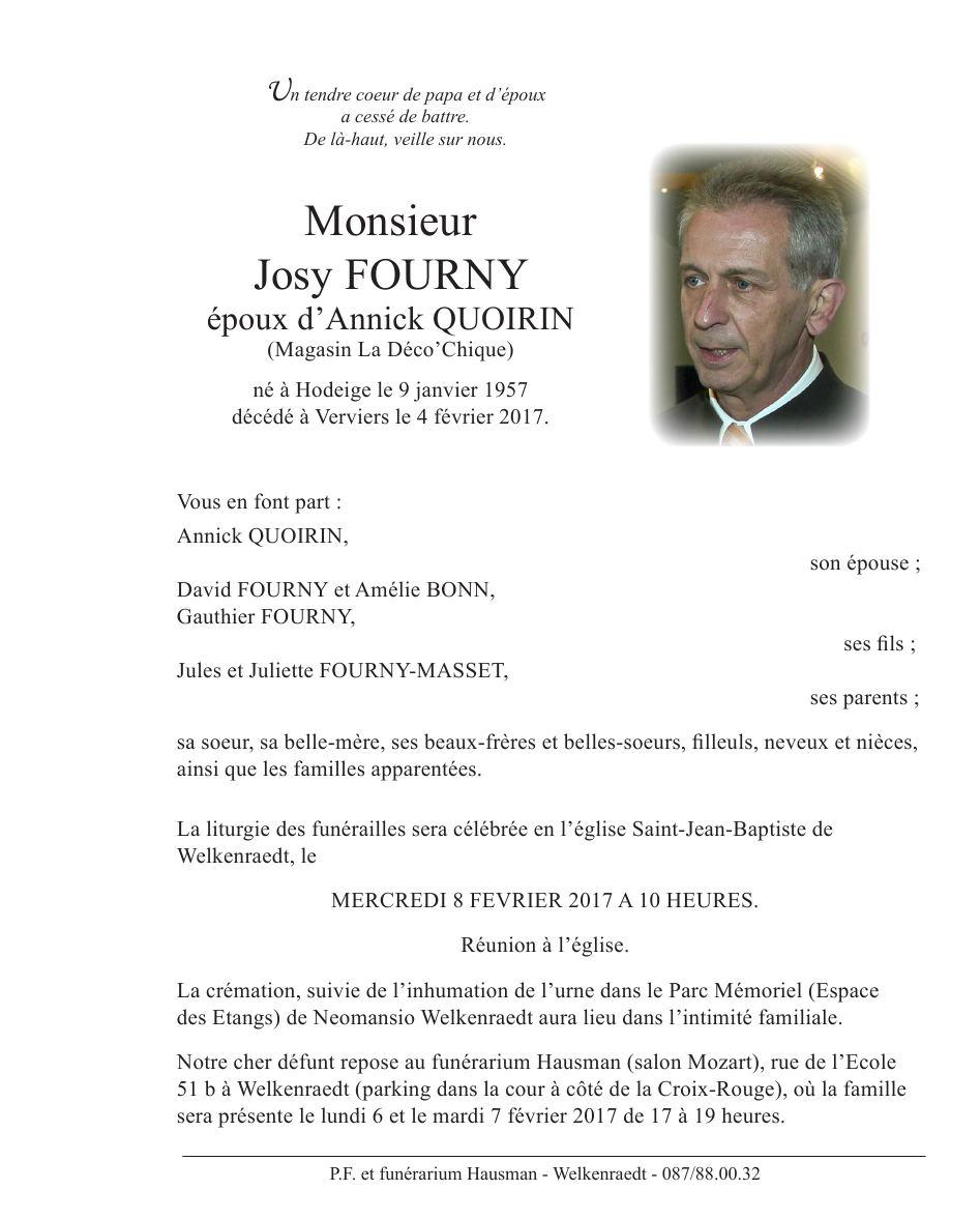 Overleden te Verviers (4800) op zaterdag 4 februari 2017 op 60-jarige leeftijd