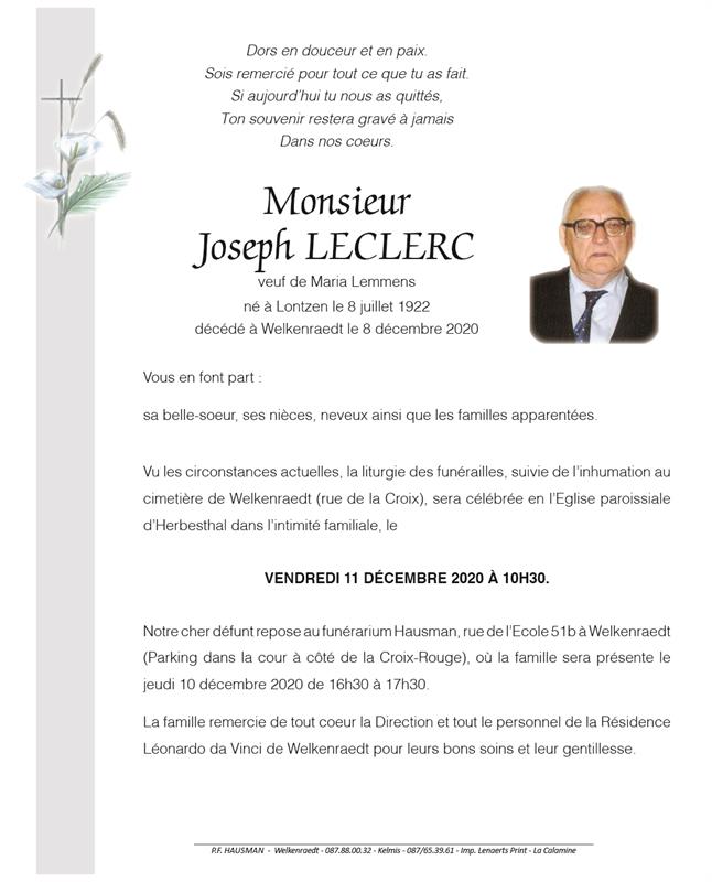 Décédé à Welkenraedt (4840) le mardi 8 décembre 2020 à l'âge de 98 ans