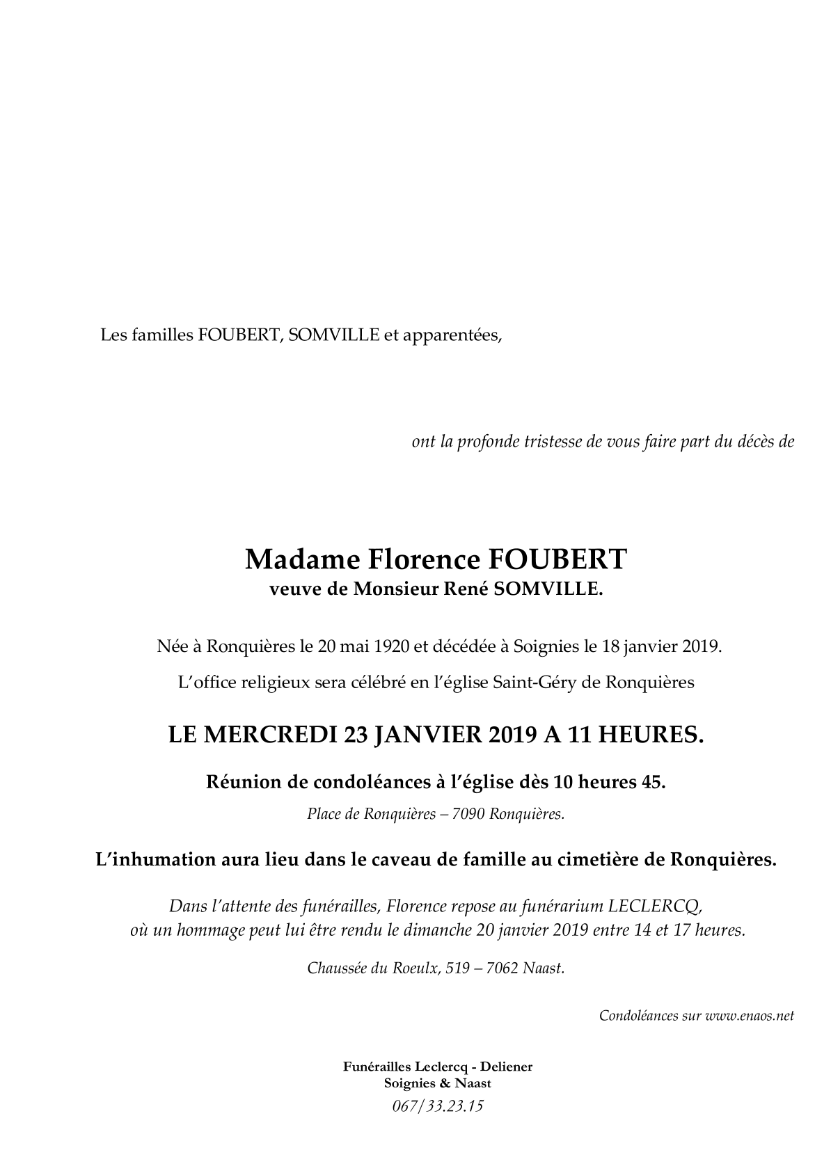 Overleden te Soignies (7060) op vrijdag 18 januari 2019 op 98-jarige leeftijd
