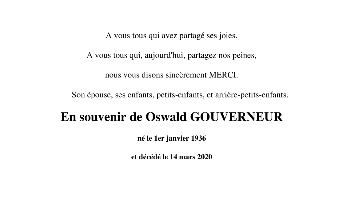 Monsieur Oswald GOUVERNEUR