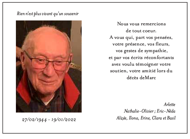 Fallecido en Tilff (4130) el miércoles, 19 de enero de 2022 a la edad de 77 años