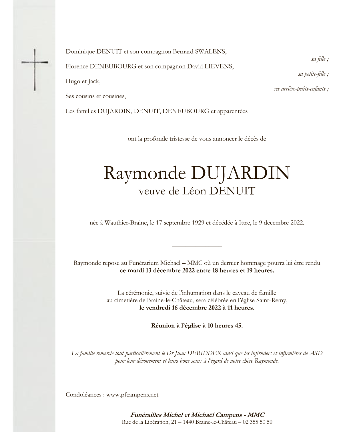 Décédée à Ittre (1460) le vendredi 9 décembre 2022 à l'âge de 93 ans