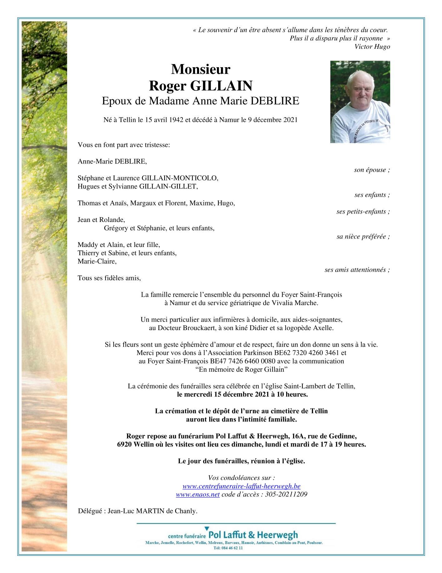 Décédé à Namur (5000) le jeudi 9 décembre 2021 à l'âge de 79 ans