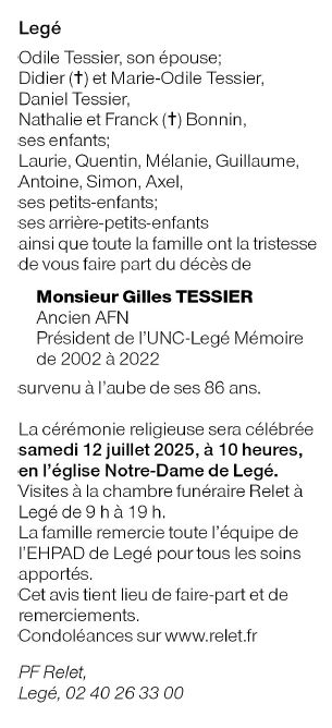 Décédé à Legé (44650, France) le jeudi 10 juillet 2025 à l'âge de 85 ans
