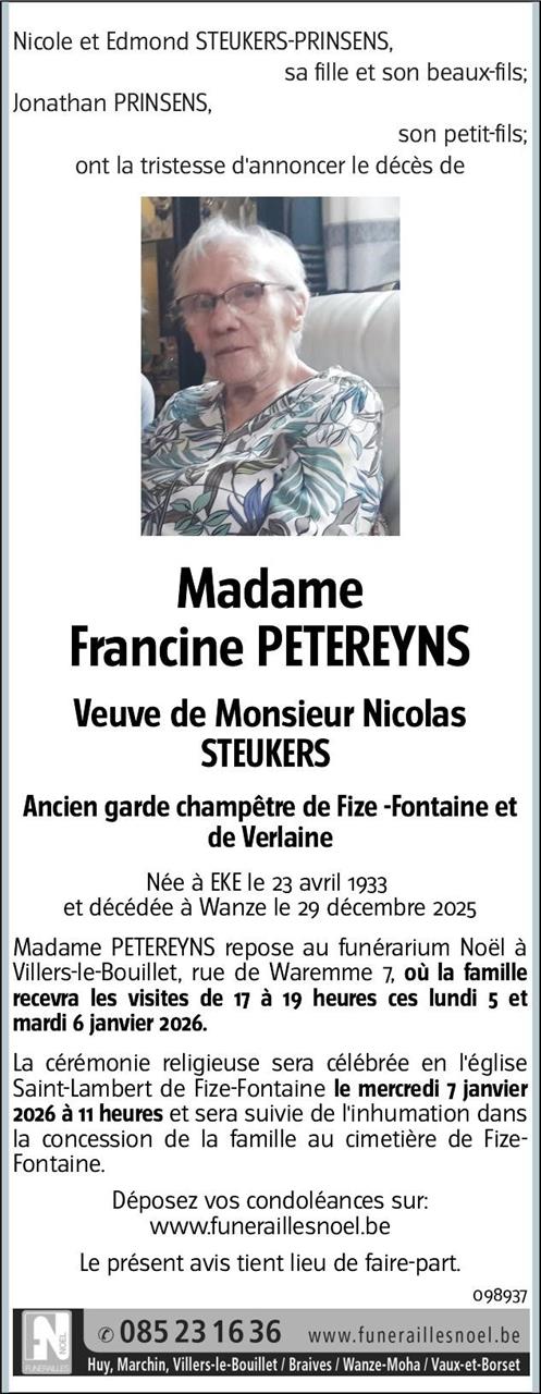Décédée à Antheit (4520) le lundi 29 décembre 2025 à l'âge de 92 ans