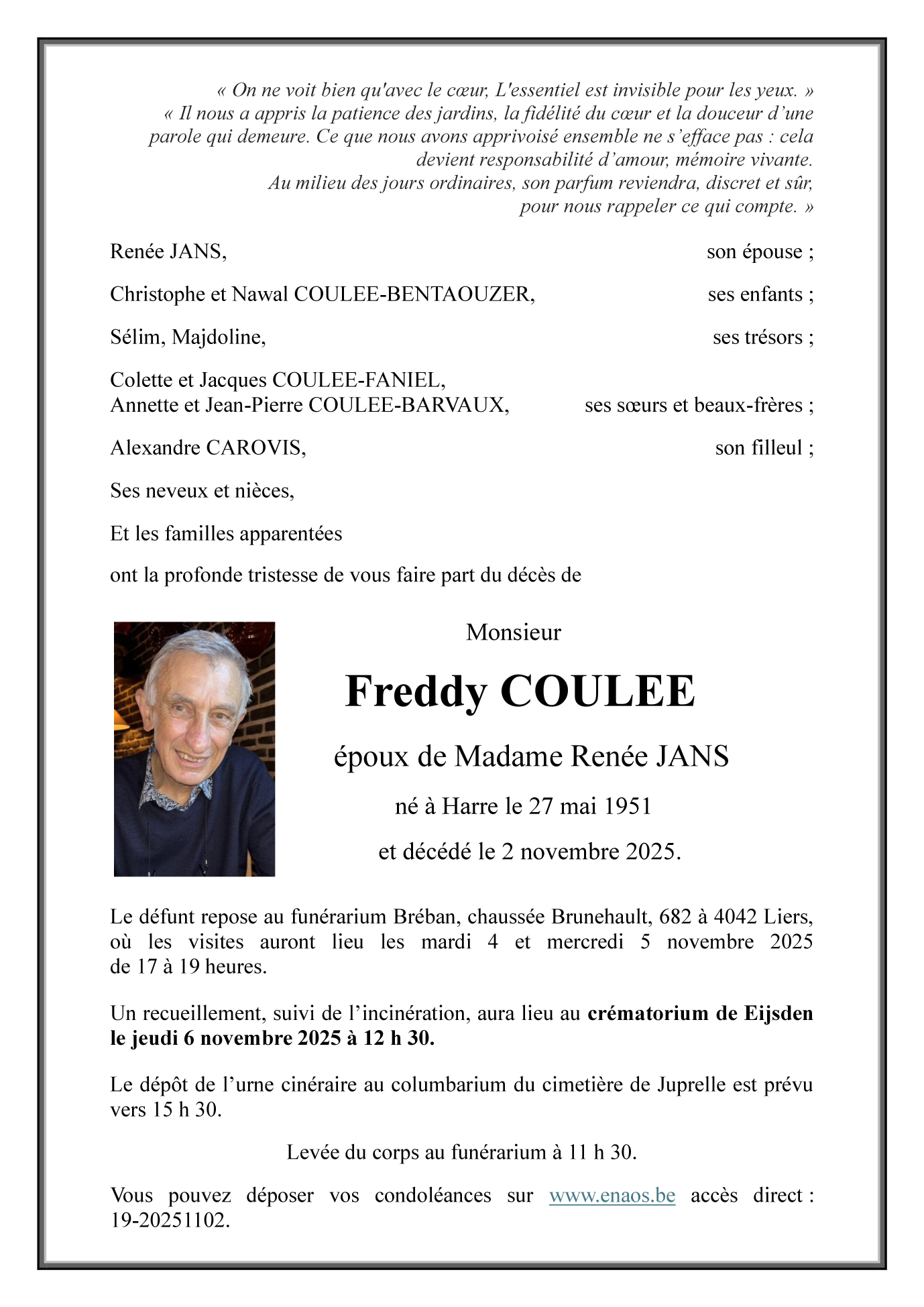Décédé à Liège (4020) le dimanche 2 novembre 2025 à l'âge de 74 ans