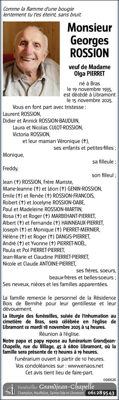 Décédé à Libramont (6800) le samedi 15 novembre 2025 à l'âge de 89 ans