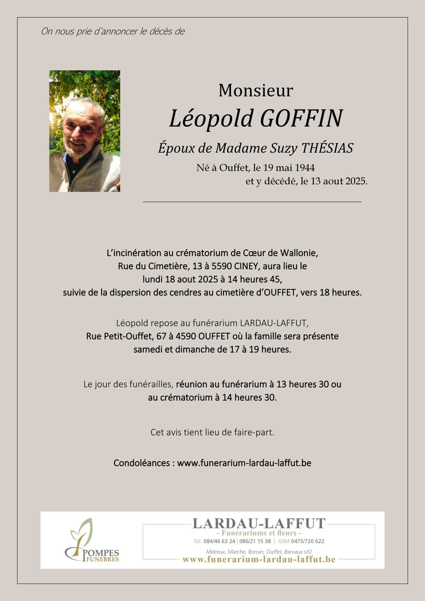 Décédé à Ouffet (4590) le mardi 12 août 2025 à l'âge de 81 ans