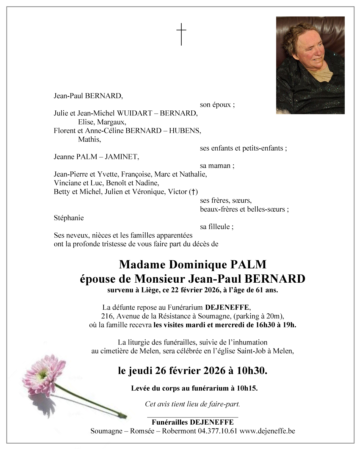 Died in Liège (4000) on 22 February 2026 at the age of 61 years