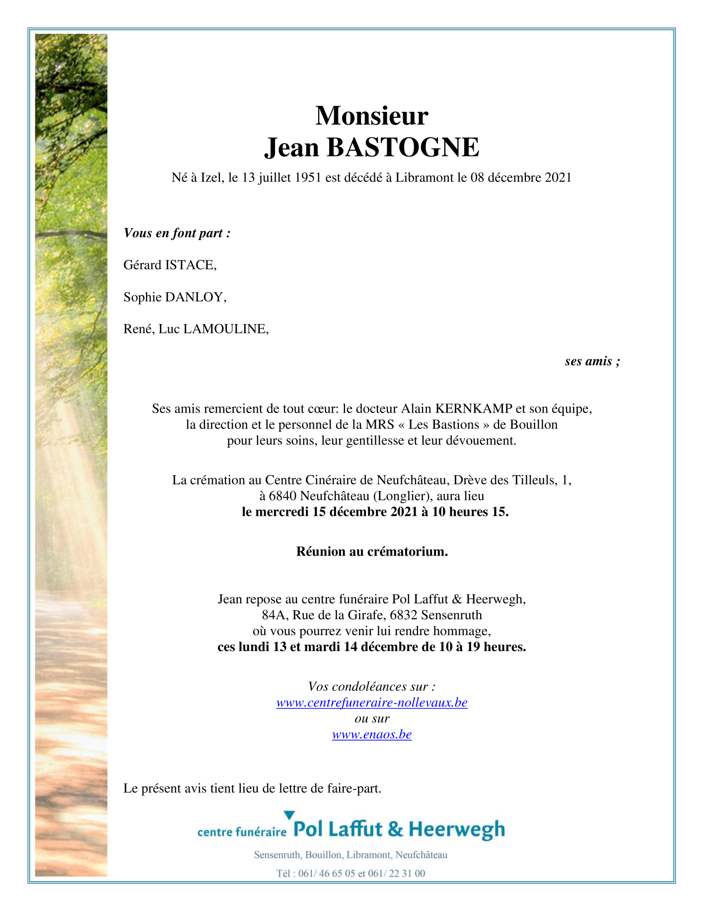 Overleden te Libramont-Chevigny (6800) op woensdag 8 december 2021 op 70-jarige leeftijd
