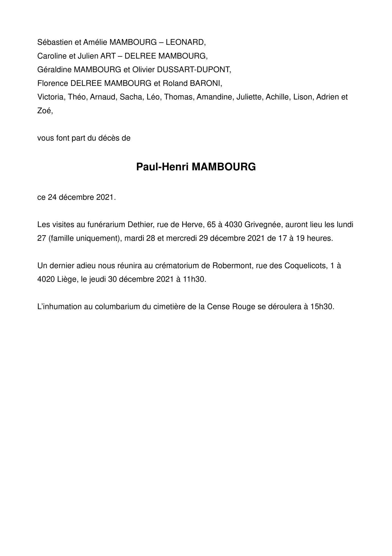 Veuf de Madame Claire MAMBOURG - HURTGEN