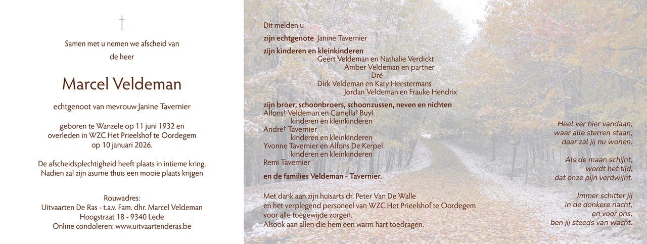 Fallecido en Oordegem (9340) el sábado, 10 de enero de 2026 a la edad de 93 años