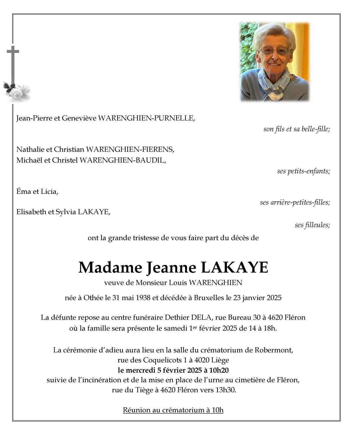 Fallecida en Bruxelles (Woluwe-Saint-Lambert) (1200) el jueves, 23 de enero de 2025 a la edad de 86 años