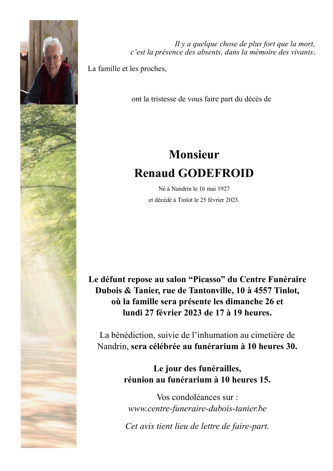 Décédé à Tinlot (4557) le samedi 25 février 2023 à l'âge de 95 ans