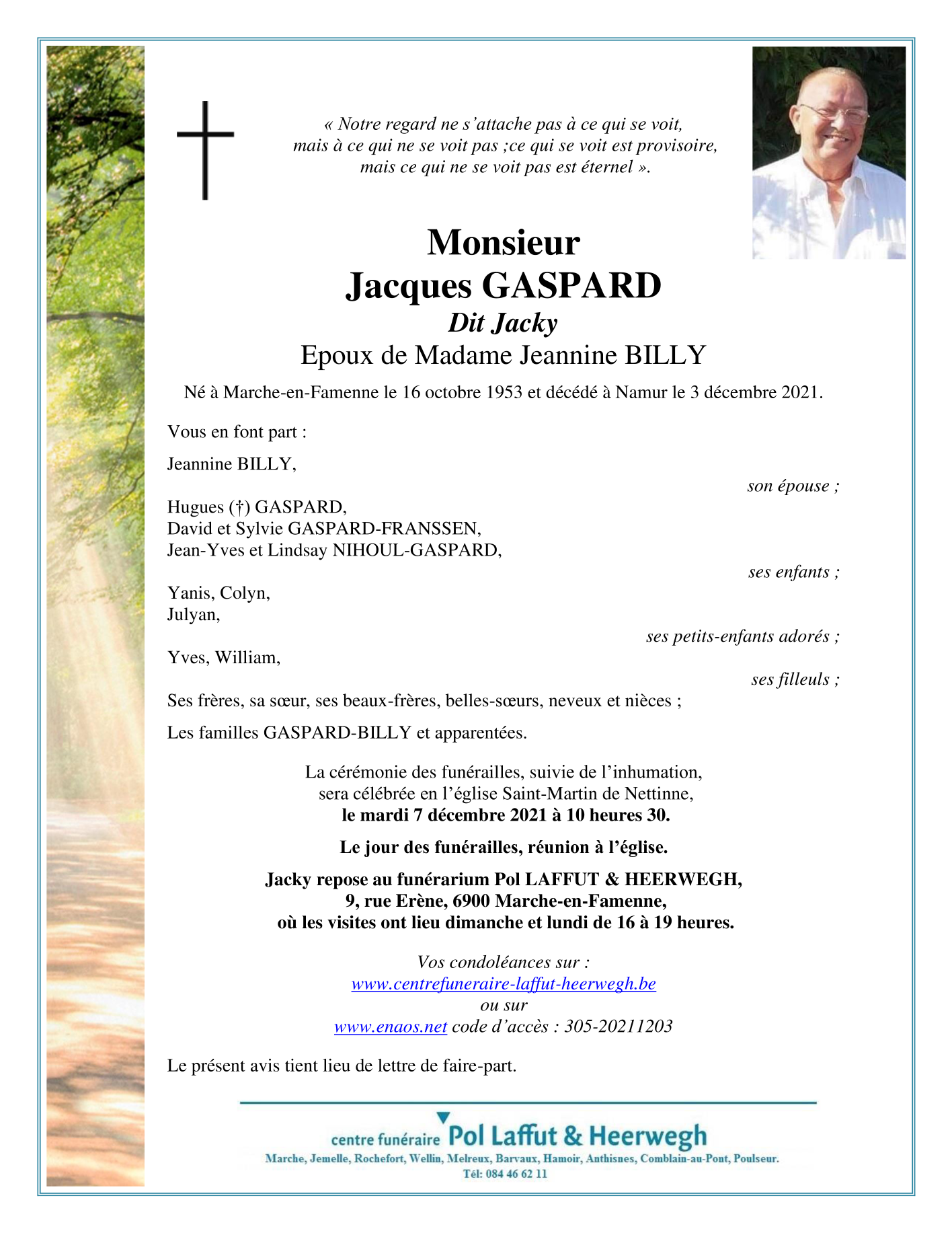 Décédé à Namur (5000) le vendredi 3 décembre 2021 à l'âge de 68 ans