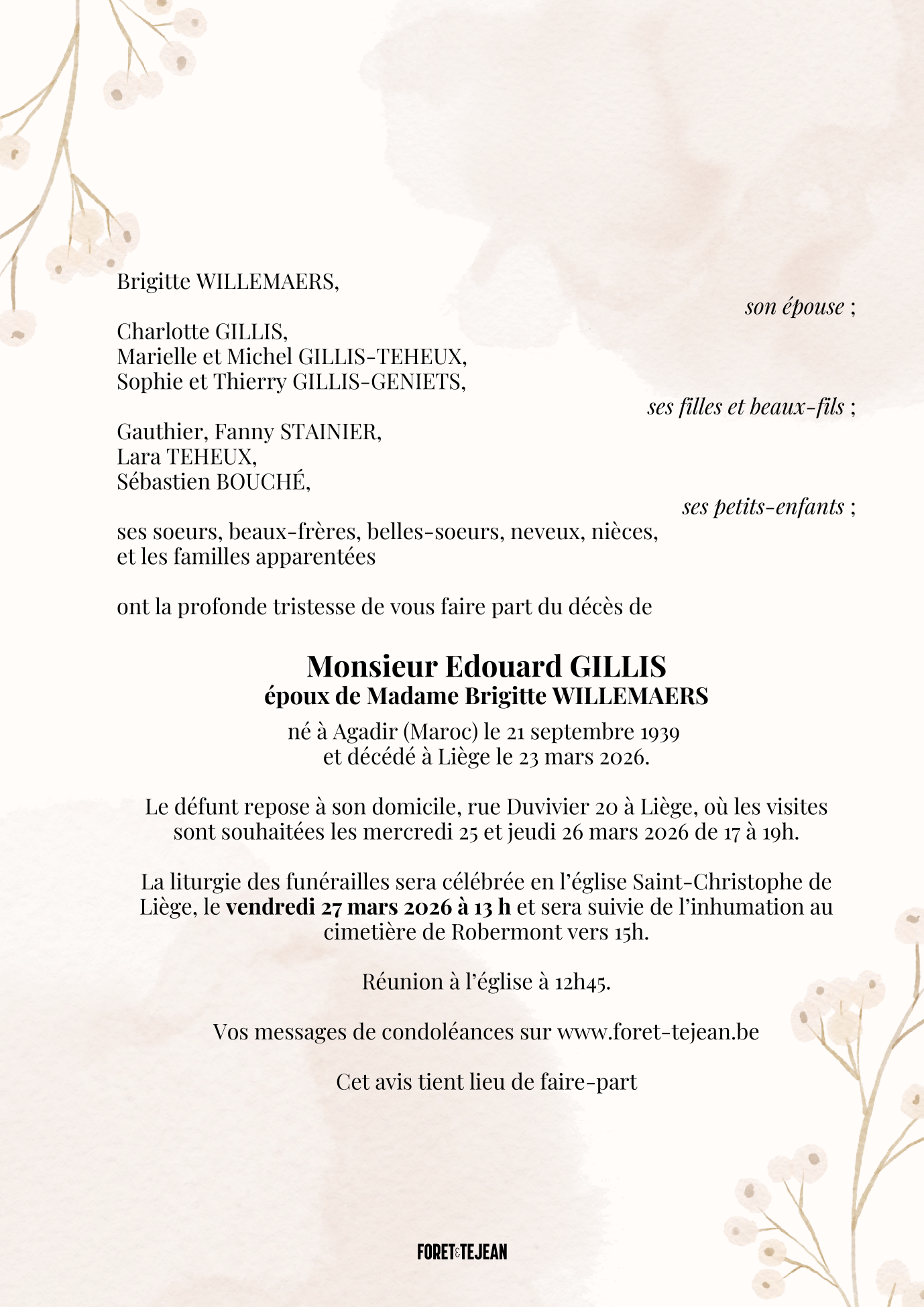 Epoux de Madame Brigitte WILLEMAERS