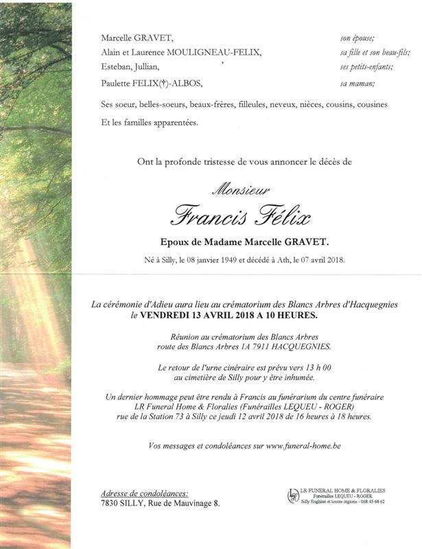 Décédé à Ath (7800) le samedi 7 avril 2018 à l'âge de 69 ans