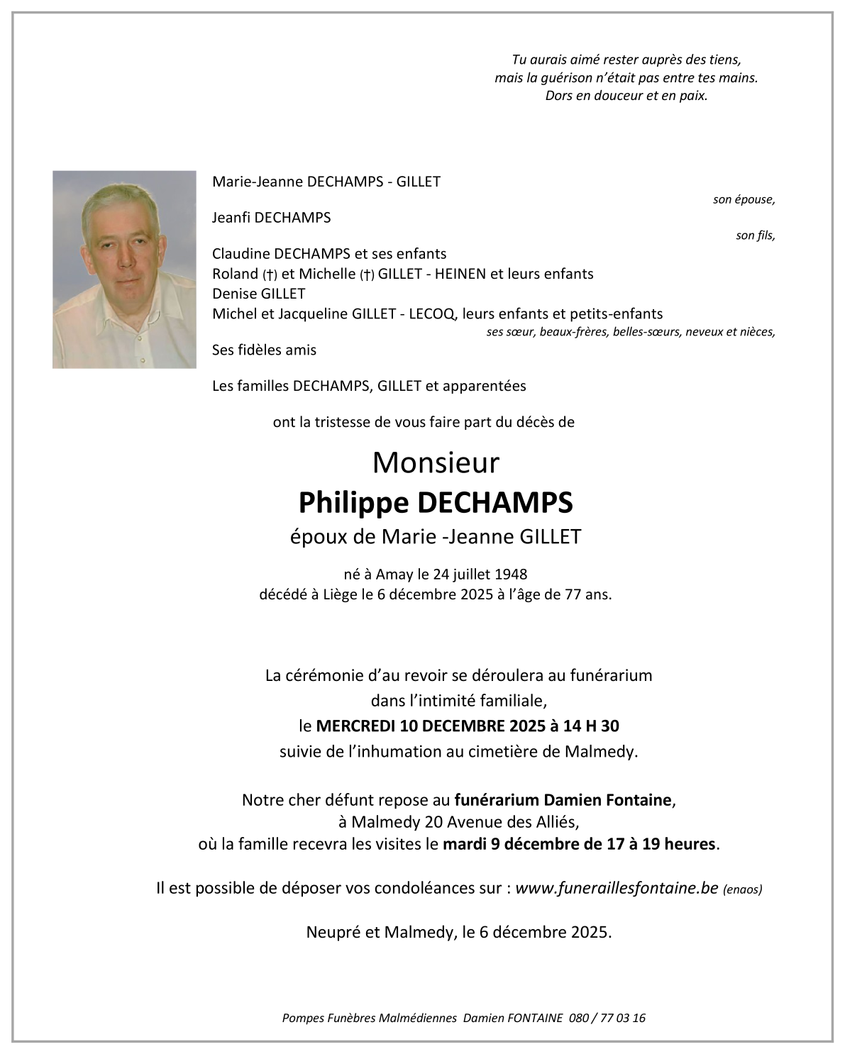 Died in Liège (4000) on 06 December 2025 at the age of 77 years