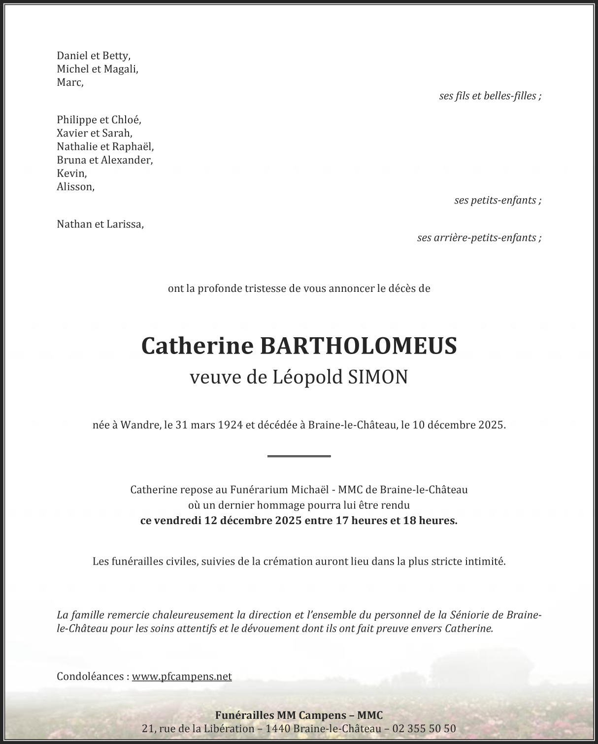 Overleden te Braine-le-Château (1440) op woensdag 10 december 2025 op 101-jarige leeftijd