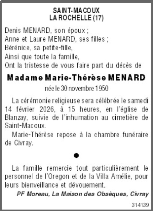 Madame Marie-Thérèze MÉNARD geboren MAÎTRE