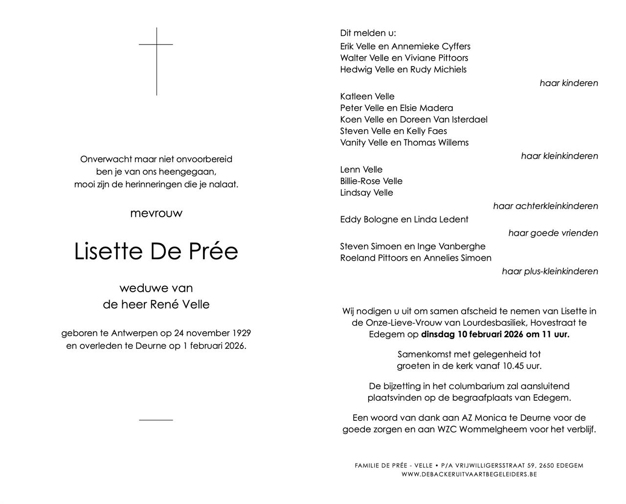 Died in Deurne (Antwerpen) (2100) on 01 February 2026 at the age of 96 years