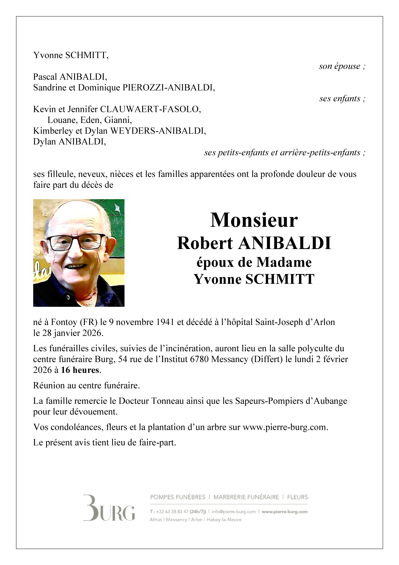 Décédé à Arlon (6700) le mercredi 28 janvier 2026 à l'âge de 84 ans