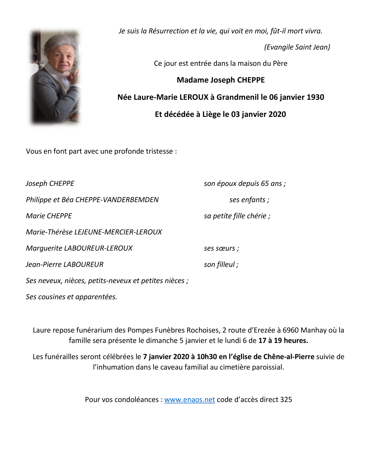Décédé à Liège (4020) le vendredi 3 janvier 2020 à l'âge de 89 ans