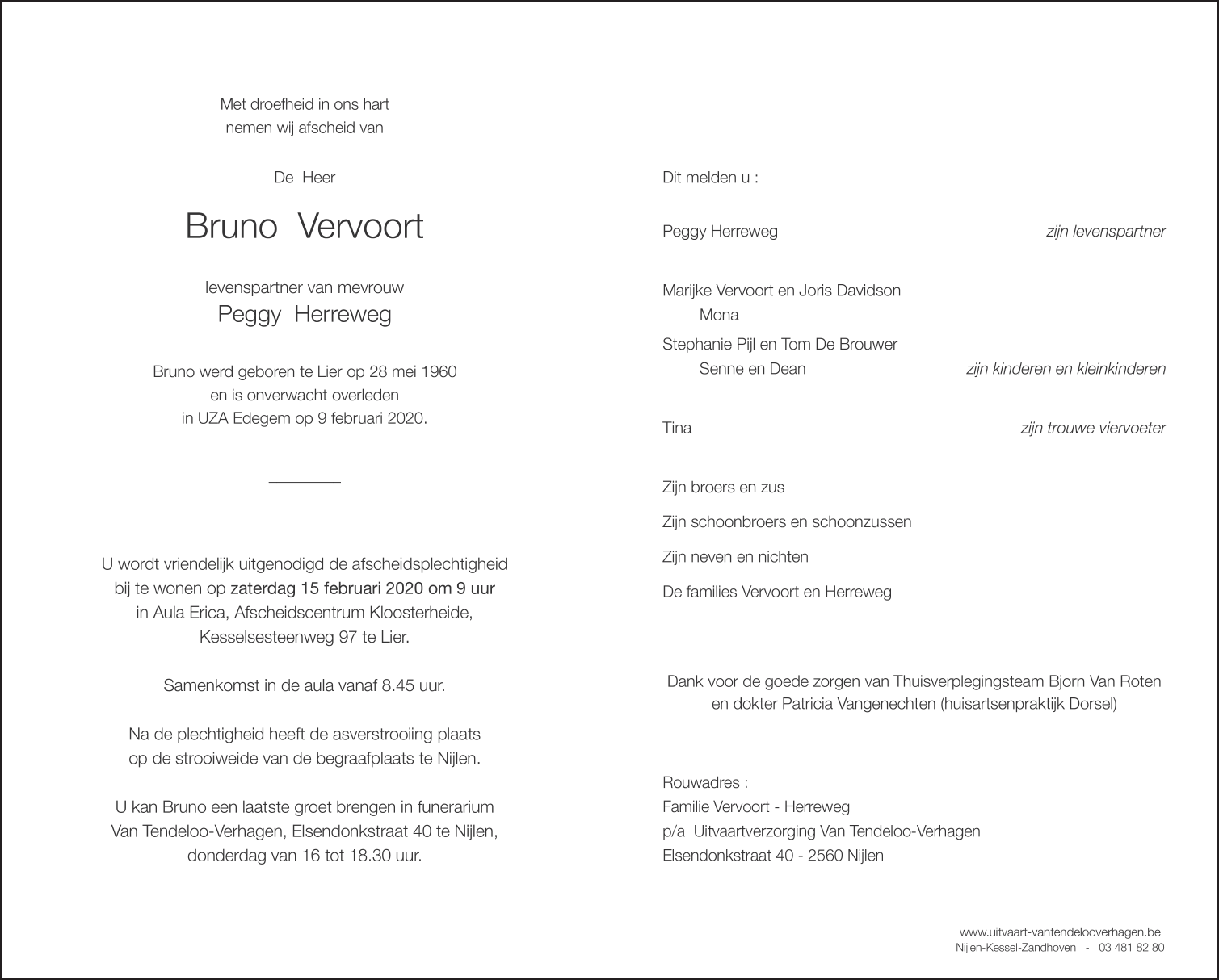 Décédé à Edegem (2650) le dimanche 9 février 2020 à l'âge de 59 ans