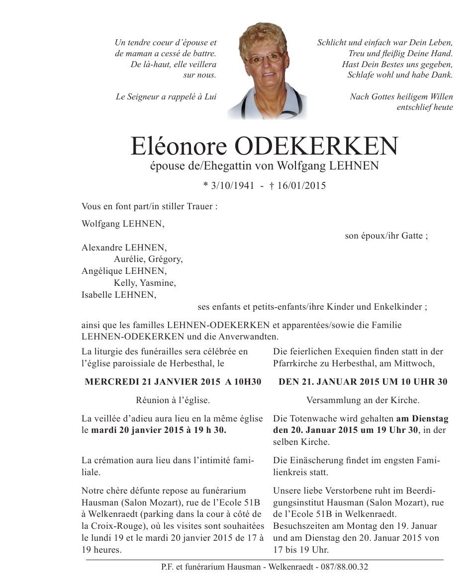 Epouse de Monsieur Wolfgang ODEKERKEN