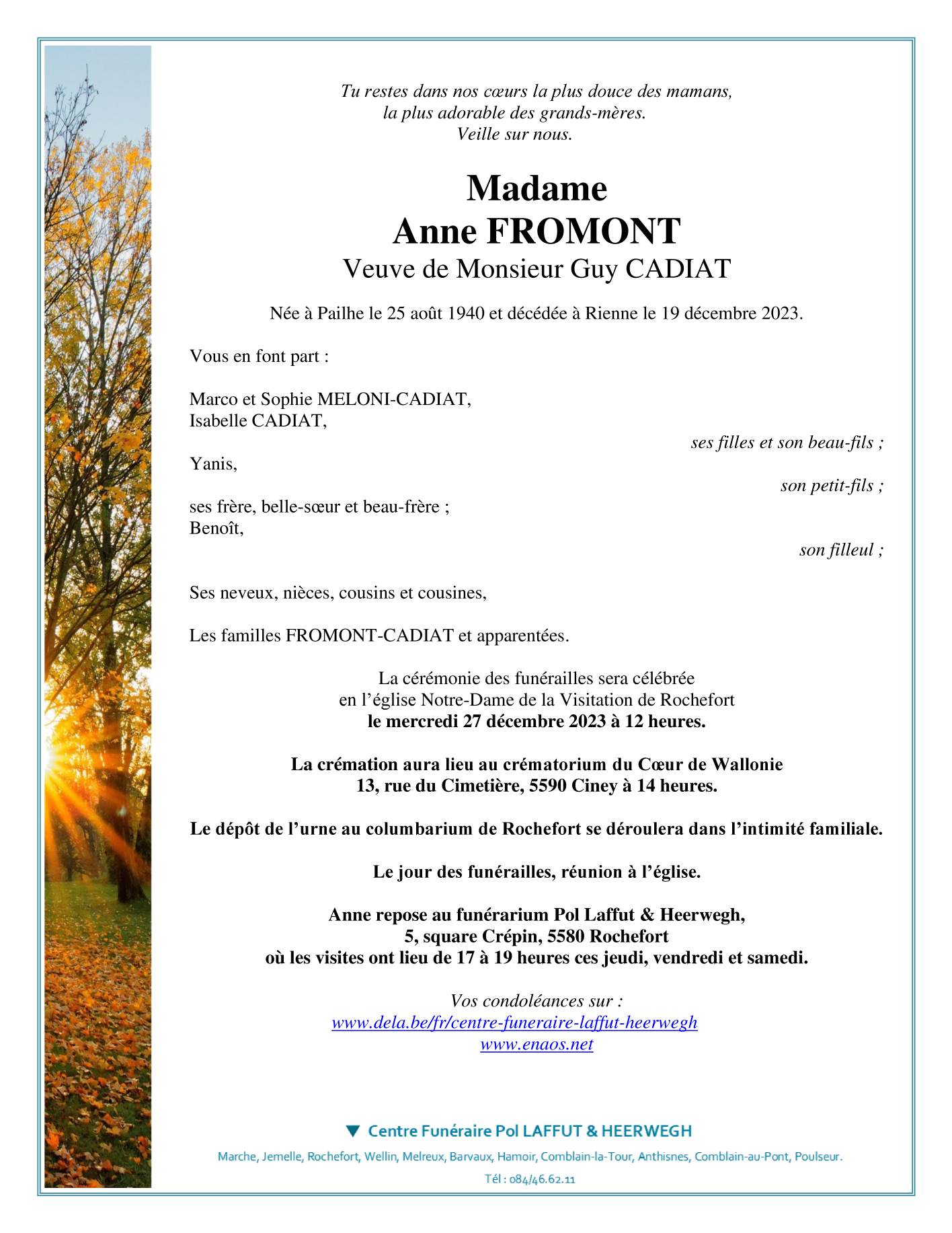 Overleden te Rienne (5575) op dinsdag 19 december 2023 op 83-jarige leeftijd