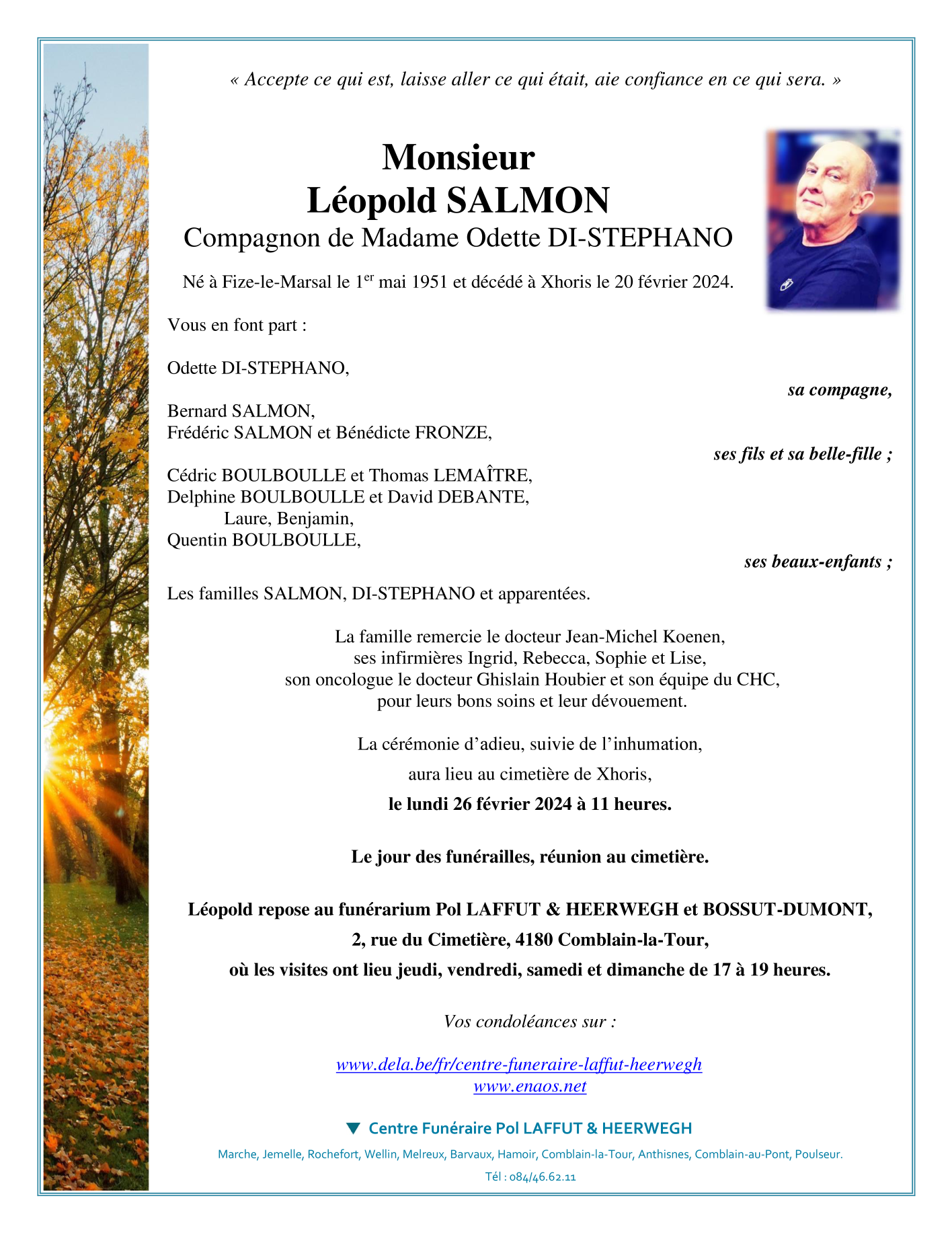 Décédé à Xhoris (4190) le mardi 20 février 2024 à l'âge de 72 ans