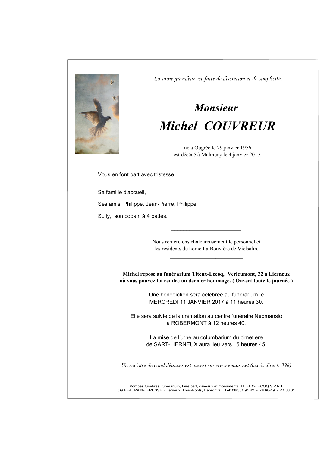 Overleden te Malmedy (4960) op woensdag 4 januari 2017 op 60-jarige leeftijd