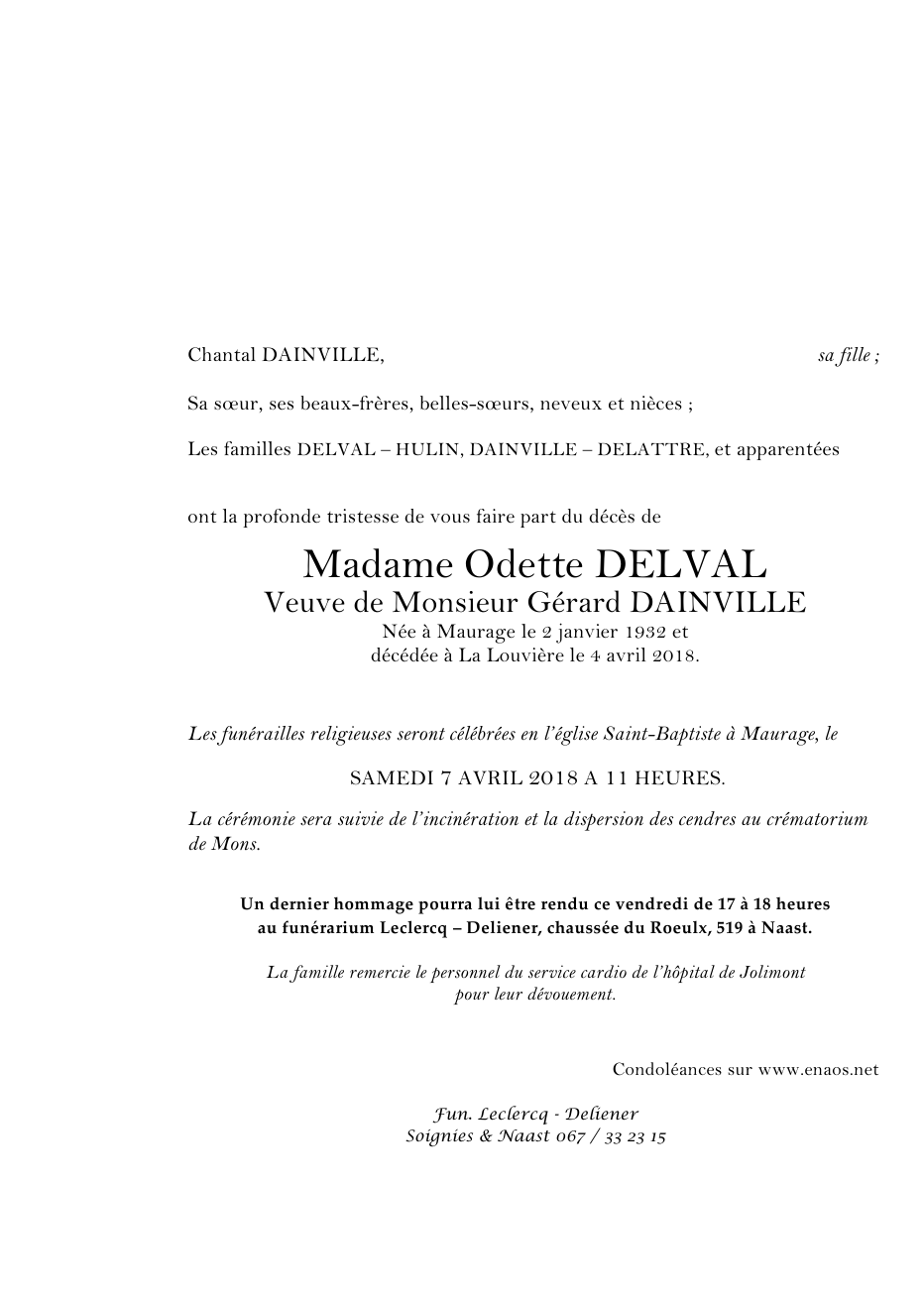 Overleden te La Louvière (7100) op woensdag 4 april 2018 op 86-jarige leeftijd