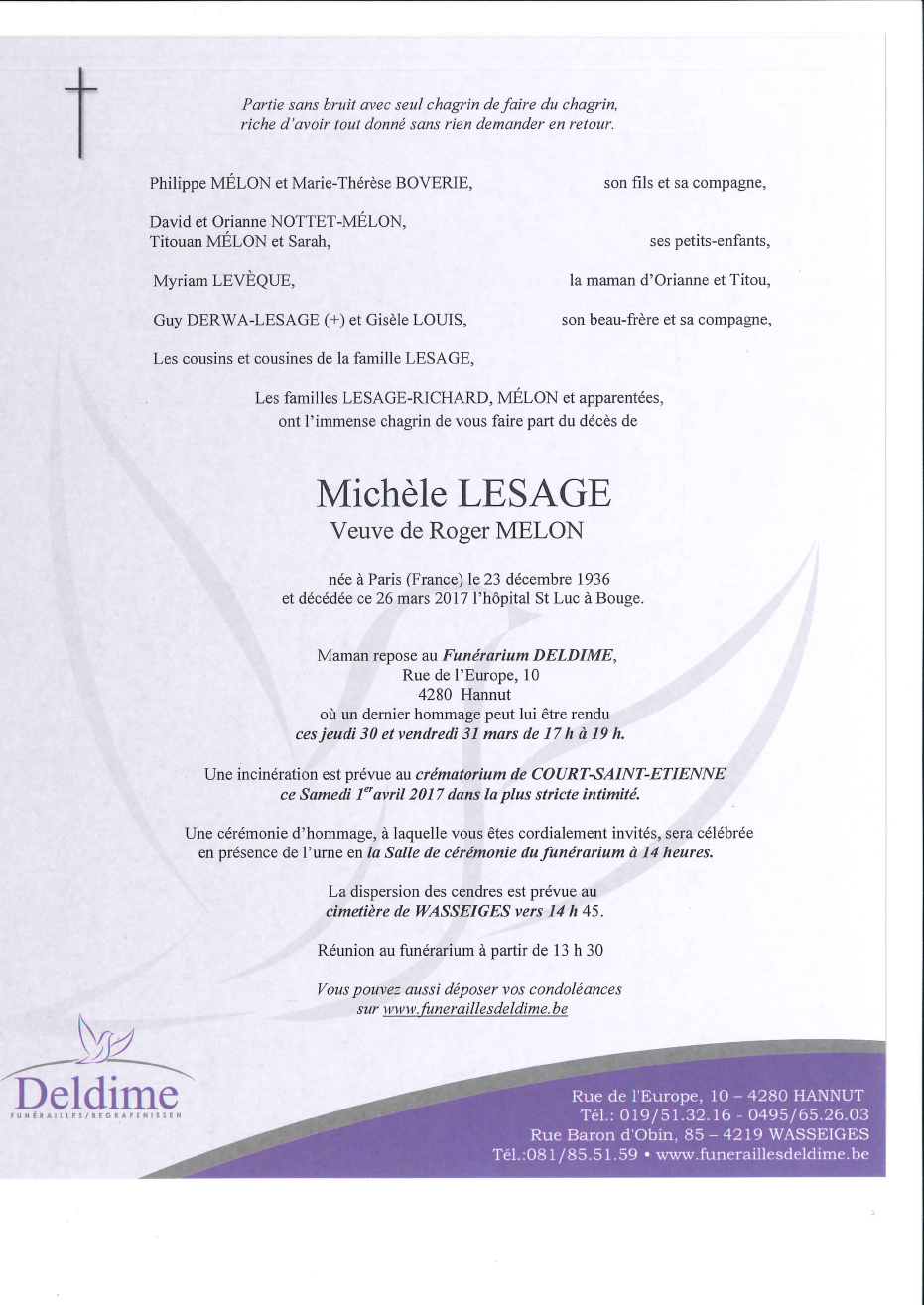 Died in Namur (5000) on 26 March 2017 at the age of 80 years