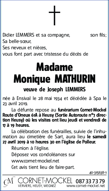 Viuda de Monsieur Joseph LEMMERS