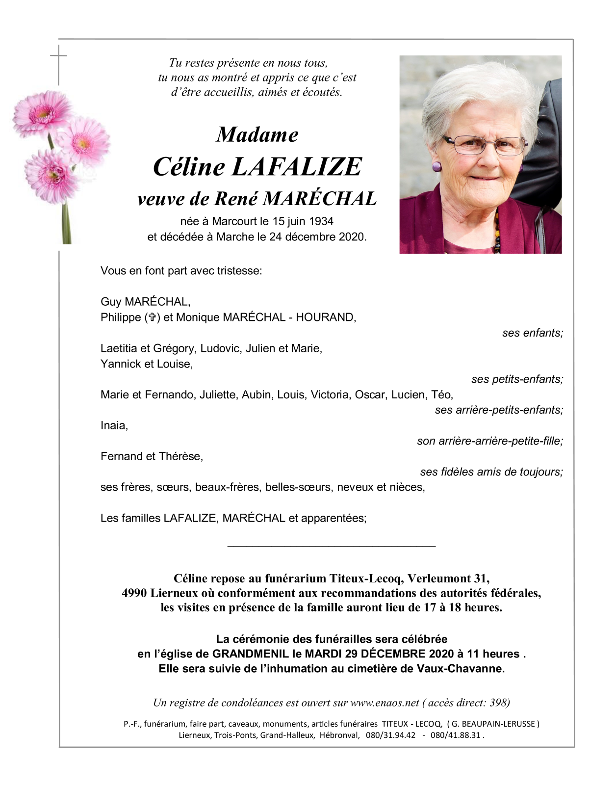 Died in Marche-en-Famenne (6900) on 24 December 2020 at the age of 86 years