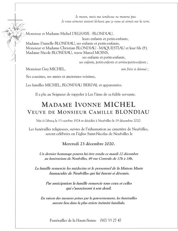 Décédée à Neufvilles (7063) le samedi 19 décembre 2020 à l'âge de 96 ans