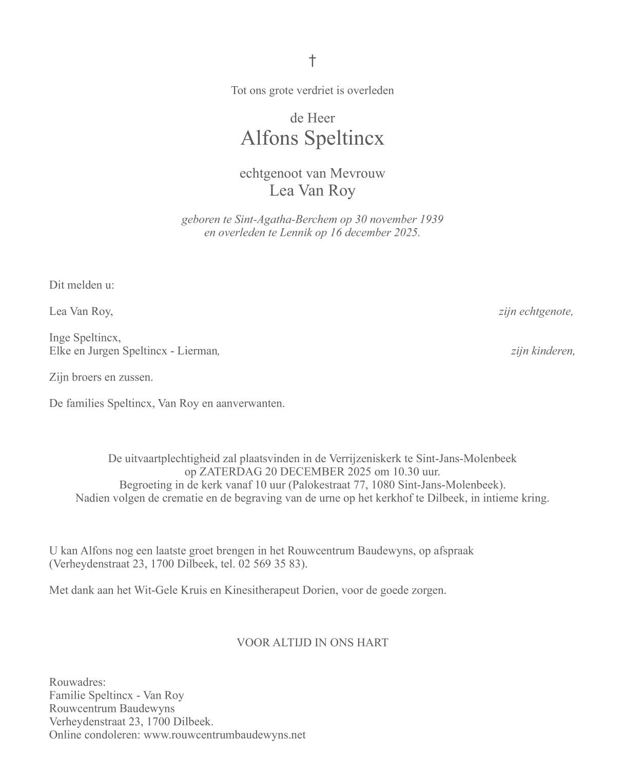 Epoux de Mevrouw Lea Van Roy